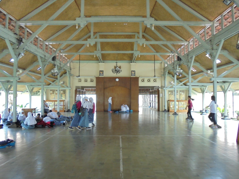 Bagian kedua menempel di belakang (sisi timur) berupa aula berbentuk bangsal tanpa dinding berukuran 23,5 m x 15,5 m. Aula ini memiliki atap yang terdiri atas dua bagian yaitu atap utama berbentuk kampung dara gepak dengan penutup atap genting tanah liat dan emper keliling. Atap utama didukung oleh konstruksi kuda-kuda kayu segitiga sama kaki dengan sambungan gapit baut dan didukung oleh tiang kayu utama berjumlah 14 (masing-masing 5 tiang di sisi utara dan selatan, serta 4 tiang di sisi timur Atap utama didukung oleh konstruksi kuda-kuda kayu segitiga sama kaki dengan sambungan gapit baut dan didukung oleh tiang kayu utama berjumlah 14 (masing-masing 5 tiang di sisi utara dan selatan, serta 4 tiang di sisi timur). Atap kedua yang berada lebih rendah dari atap utama berupa atap emper didukung oleh kuda-kuda segitiga siku-siku dan tiang kayu pendukung berjumlah 18 (masing-masing 6 tiang di sisi utara, selatan, dan timur). Tiang dan kuda-kuda pada atap emper ini berfungsi juga sebagai pendukung struktur tiang dan kuda-kuda penyangga atap utama yang ukurannya sangat tinggi.