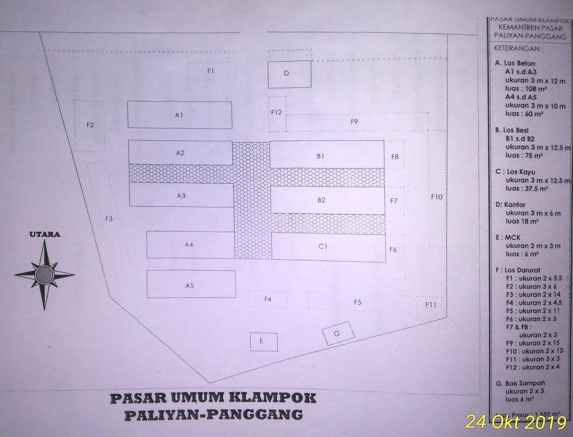 Pasar Klampok memiliki Luas 1.559  m². Sebagai pasar pemerintah yang berada paling barat di wilayah Gunungkidul, Pasar Klampok selalu ramai dikunjungi oleh pedagang dan pembeli dari daerah Panggang, Purwosari, Imogiri (Bantul) dan Kretek (Bantul). Sejak pertama kali didirikan Pasar Klampok hanya buka di setiap hari pasaran legi.