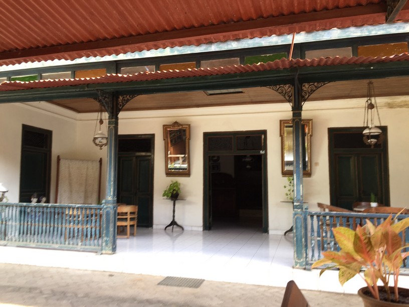 menuju ruang Omah Tengah. Ornamen hias pada bagian pringgitan berupa pasangan kaca warna warni yang digunakan pada bagian ventilasi. Dua buah kaca besar dipasang pada dinding sisi selatan, masing masing diletakkan di atara pintu.