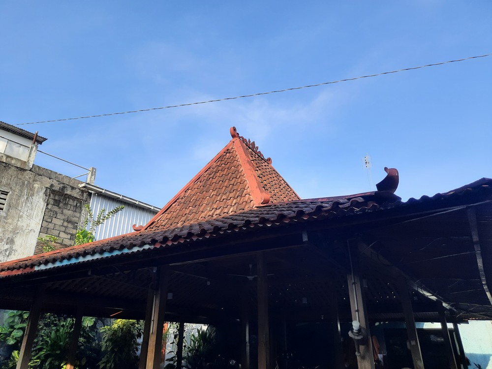 Di sekeliling atap, reng dan usuk dipasang dengan pola ri gereh. Sebagai penutup atap berupa genteng press dan bubungan brunjung dan dudur ditutup menggunakan wuwung seng. Pada sekeliling atap emper dibuat perluasan yang menjorok keluar sejauh 1 meter. Perluasan tersebut berfungsi semacam kanopi.