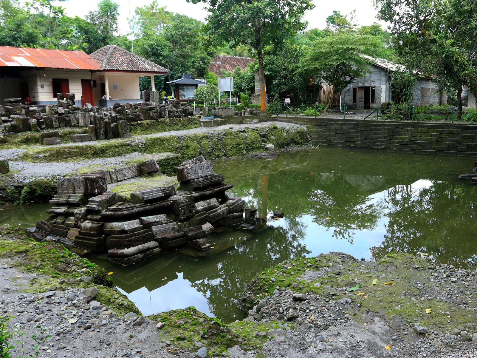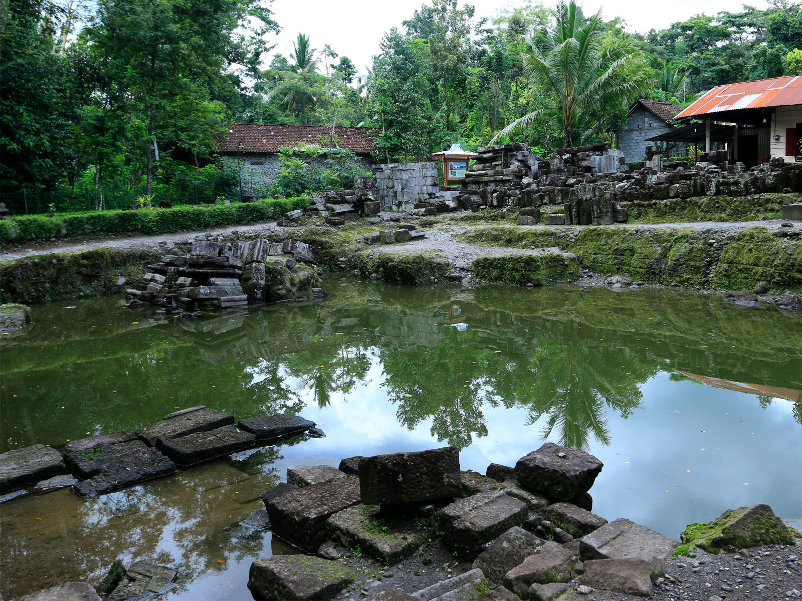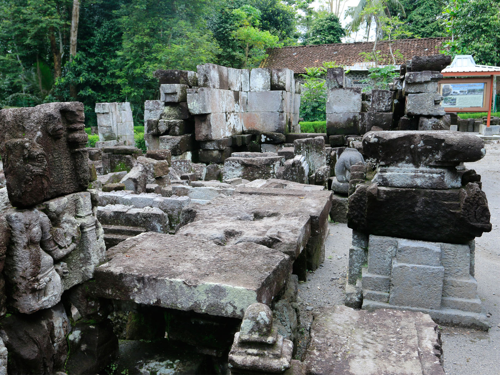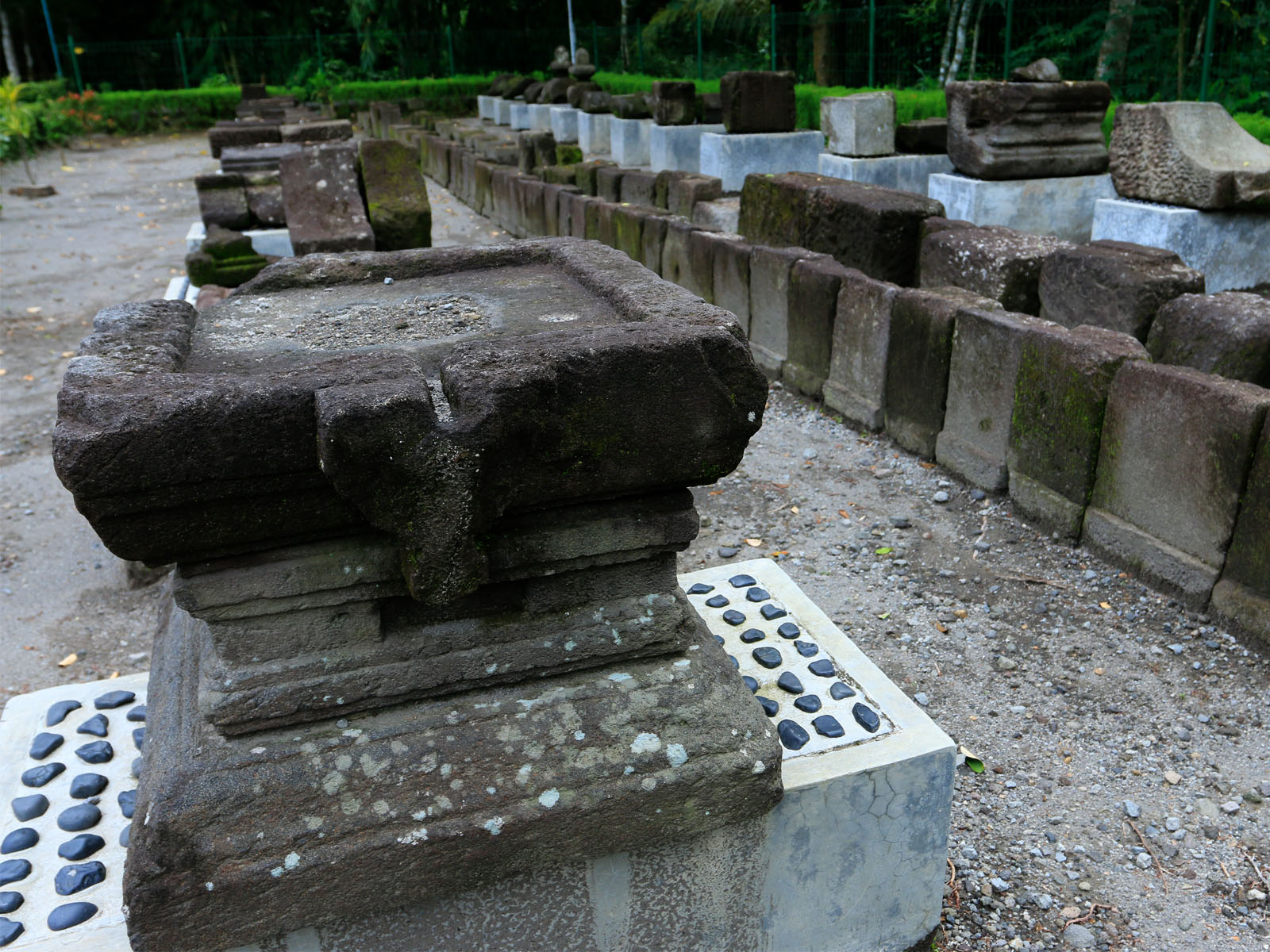 Riwayat Penemuan | : | Pertama kali ditemukan tahun 1884 dalam keadaan runtuh yang ditumbuhi semak belukar dan akar pohon. Berada di kedalaman 2,5 m dibawah permukaan tanah sekarang. |